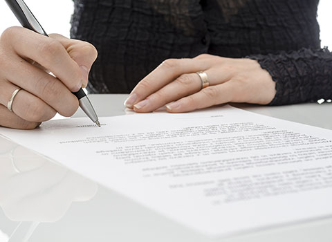 hero image of woman signing legal document KHM Attorneys at Law Colorado Springs, Castle Rock